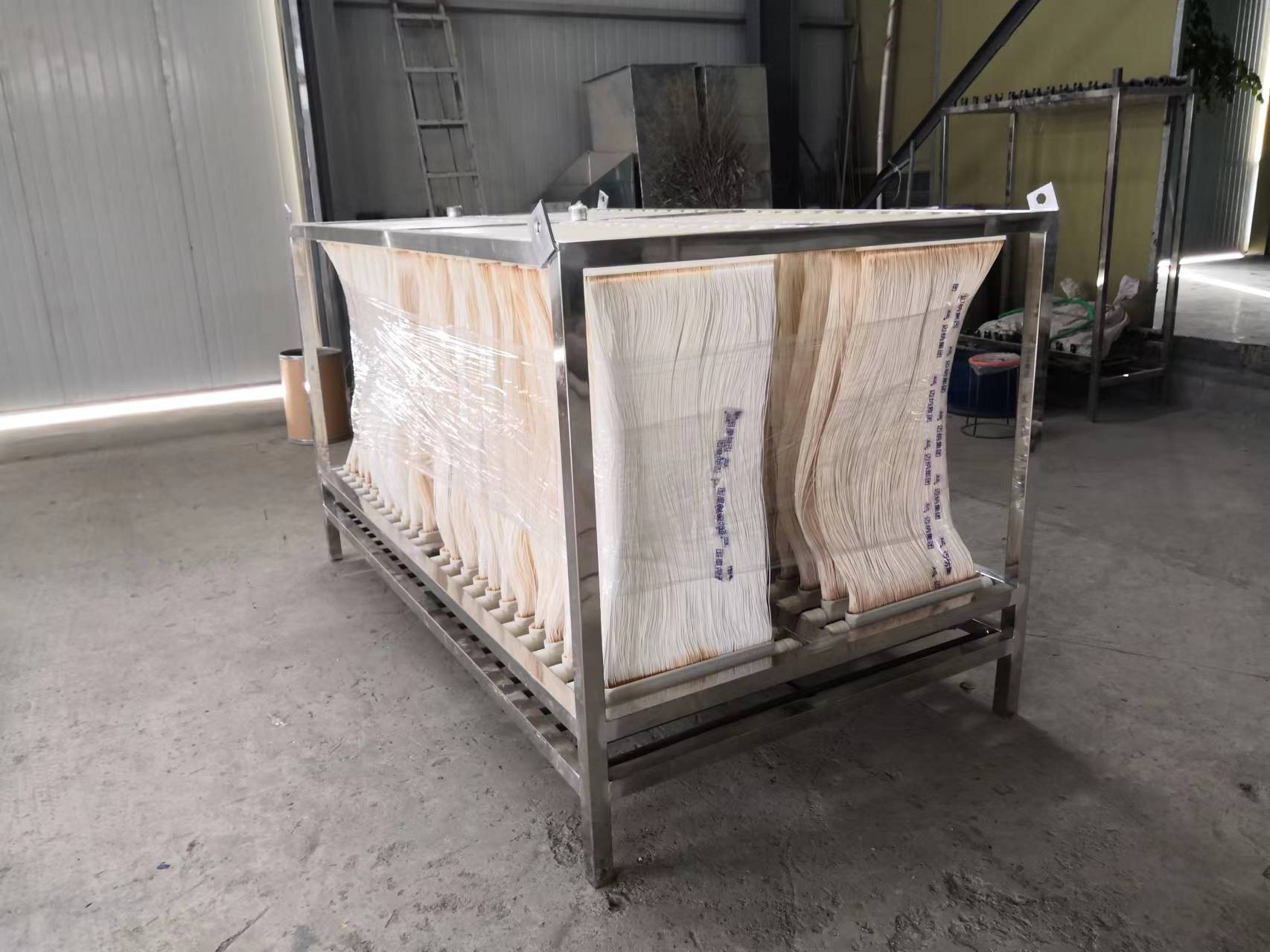 MBR簾式膜并不是平板膜,MBR簾式膜全稱叫MBR中空纖維簾式膜,是簾式型的,帶內襯,材質是PVDF。平板膜和簾式膜不一樣。簾式膜效果更好一點,出水水質良好穩定,水通量也大,使用壽命一般在3-5年。